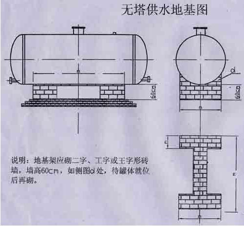 3、选定场地后,要处理好地基、在用砼浇注或用砖石砌筑罐体支承座。(参照设备地基图)待基座初凝后,在吊装罐体并放稳,随后安装附件,接通电源。